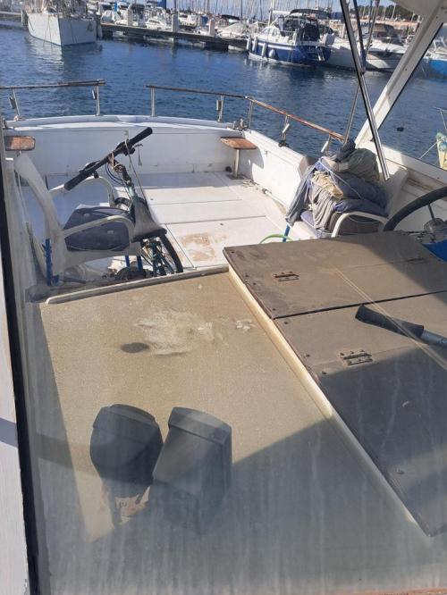 Embarcación de fibra de vidrio reforzada (P.R.F.V), denominada “CASTELLANO”, nº de serie de casco FR-GCY80019H515, con 7,92 metros de eslora, 3 metros de Manga, T.R.B.: propulsado por dos motores, de la marca 2 x PERKINS 4235T, con número de serie 2003002989 y 2003002980, Potencia 140 Kw cada uno KW/CV, con bandera española y matrícula 7ª 362-8-16